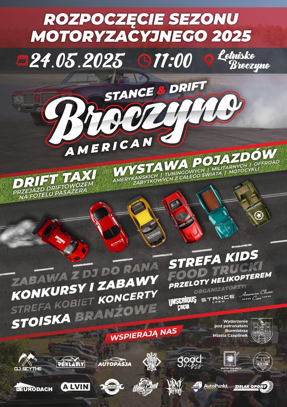 Zapraszamy wszystkich miłośników motoryzacji na rozpoczęcie sezonu motoryzacyjnego 2025 które odbędzie się 24.05.2025 o 11:00 na lotnisku Broczyno.