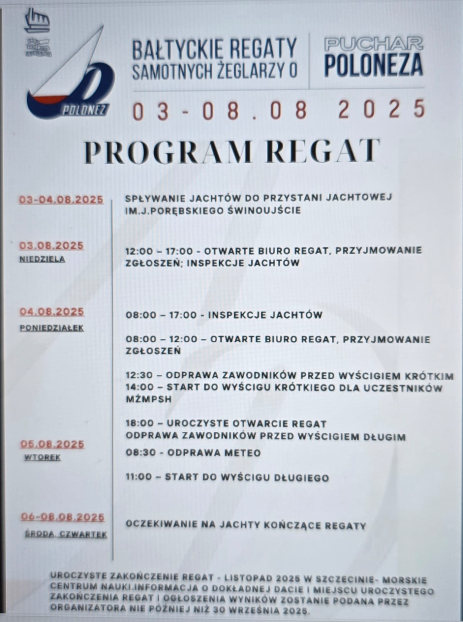 Regaty są otwarte dla żeglarzy solo, posiadających ważne ubezpieczenie OC jachtu oraz wymagane kwalifikacje nawigacyjne. Szczegóły regulaminu i formularz zgłoszeniowy znajdziecie na stronie www.polonezcup.pl. Nie przegap okazji, by stanąć oko w oko z siłami natury i zawalczyć o Puchar Poloneza!
