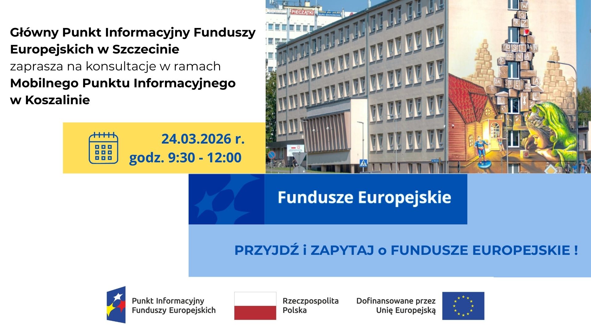 Główny Punkt Informacyjny Funduszy w Szczecinie zaprasza na bezpłatne konsultacje dotyczące Funduszy Europejskich.