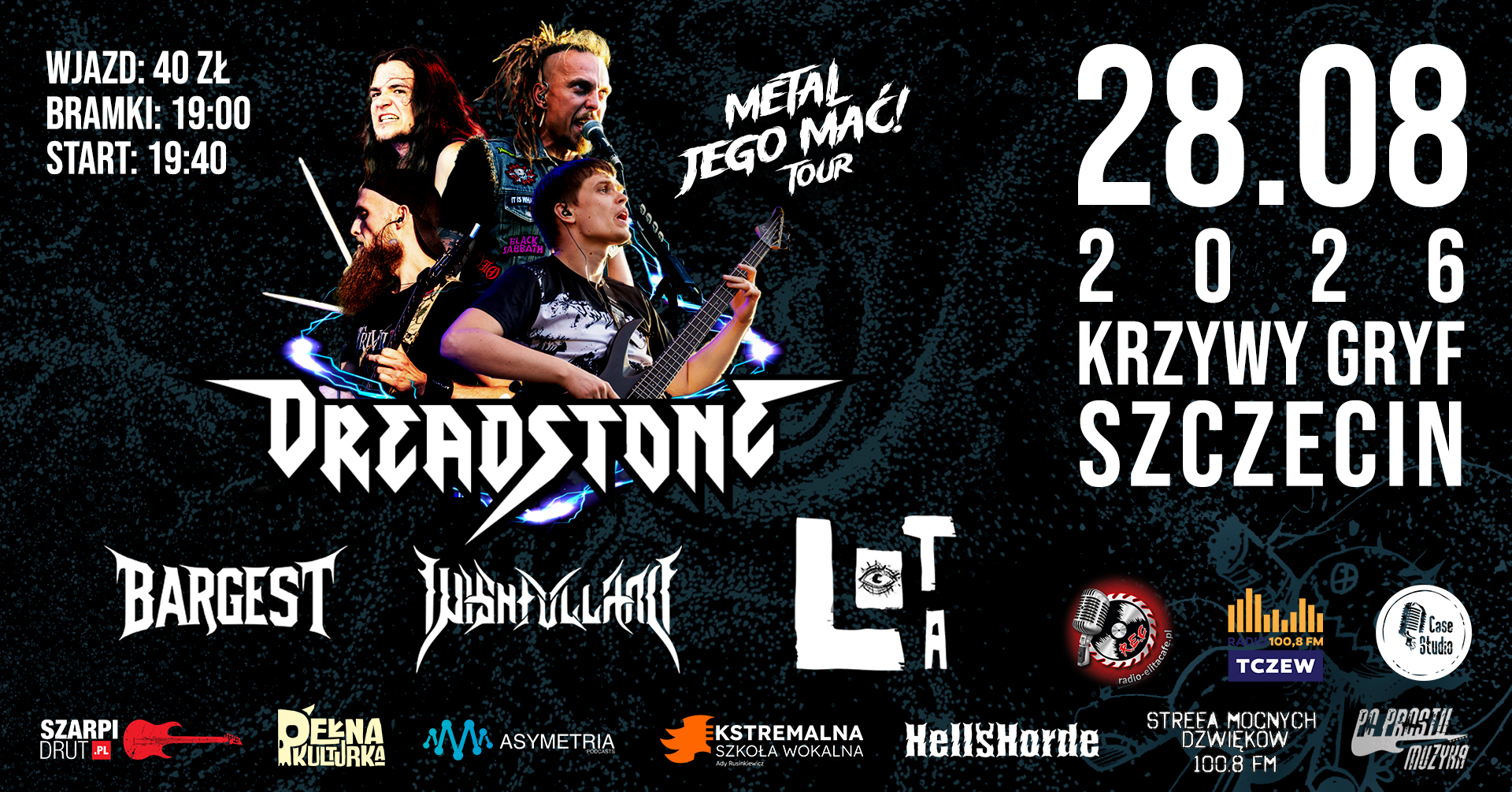 Wjazd: 40 pln na bramce (30 pln w przedsprzedaży pod: https://stage24.pl/wydarzenia/dreadstone-lota-bargest-wishfulland-krzywy-gryf-7325)