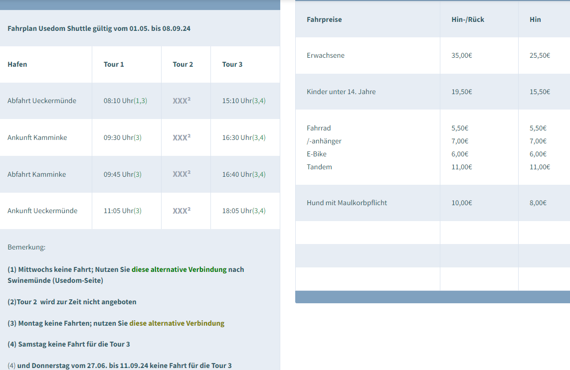 Harmonogram i cennik dostępny na stronie (w języku niemieckim):