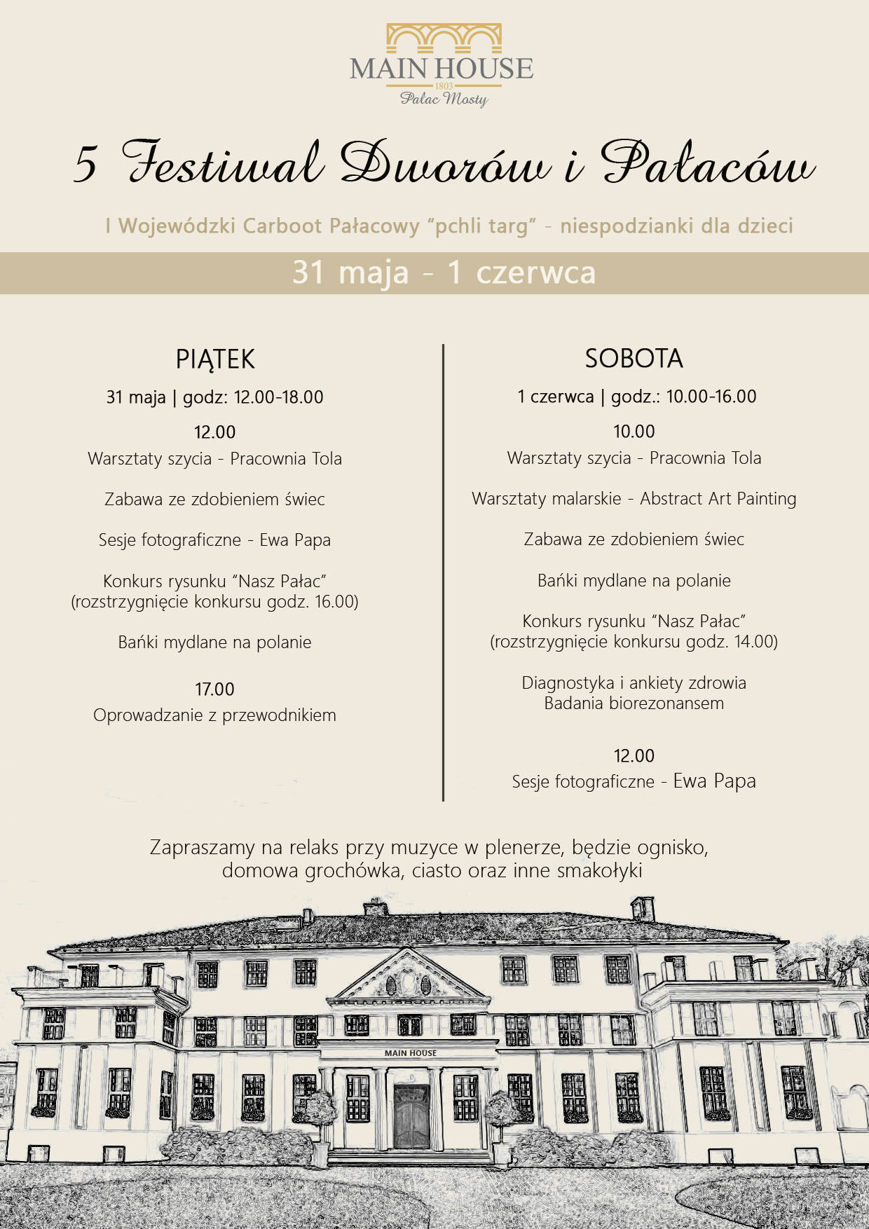 Serdecznie zapraszamy na coroczny już V festiwal Dworów i Pałaców, tym razem po raz pierwszy w Pałacu w Mostach - gmina Goleniów.