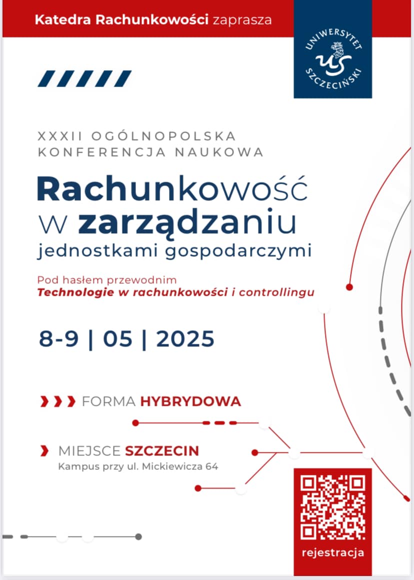 Stettin wird bald ein landesweites Zentrum für den Austausch von wissenschaftlichen Gedanken und praktischen Erfahrungen im Bereich Rechnungswesen und Controlling sein. Am 8. und 9. Mai 2025 findet unter dem Motto "Technologien in Rechnungswesen und Controlling" die XXXII. gesamtpolnische wissenschaftliche Konferenz "Rechnungswesen in der Verwaltung von Wirtschaftseinheiten" statt, die vom Lehrstuhl für Rechnungswesen der Universität Stettin organisiert wird.