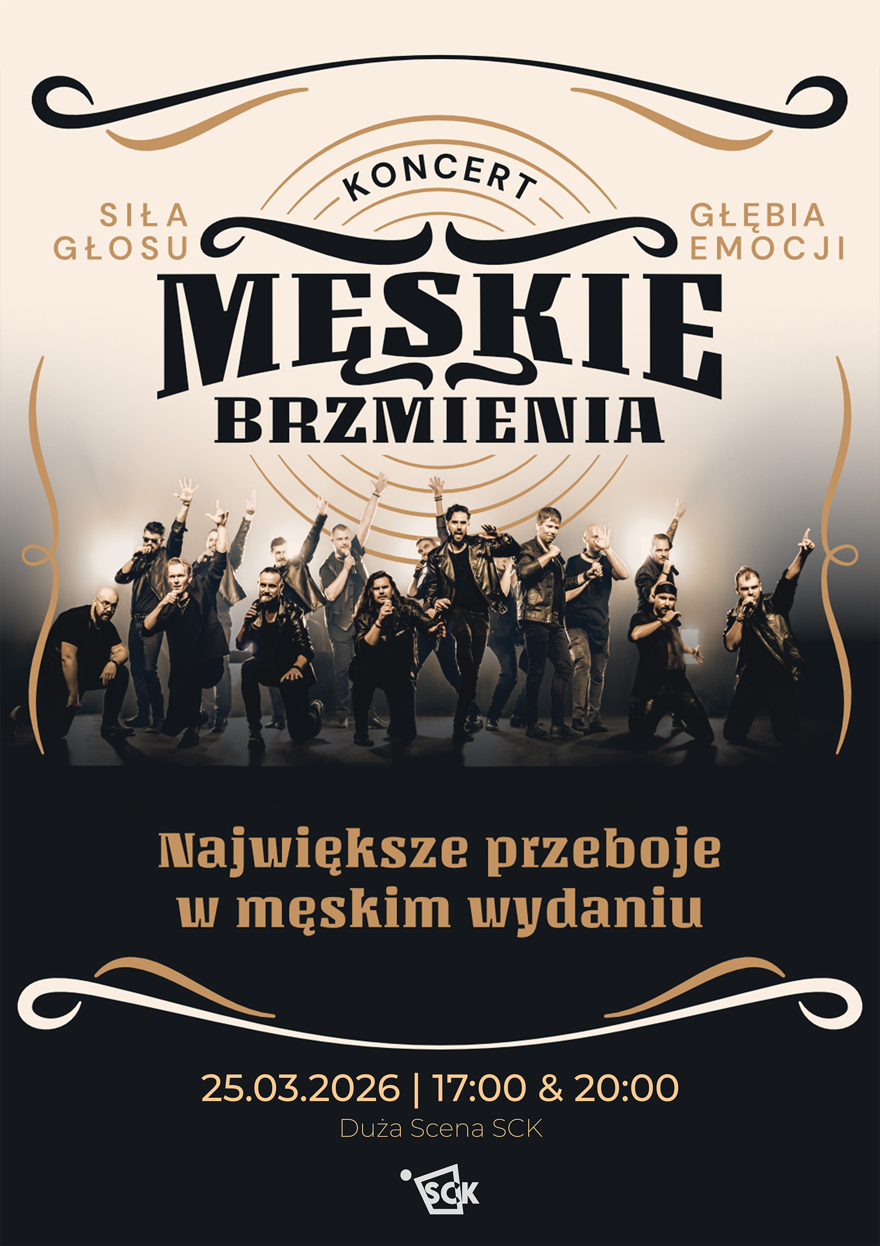 Zeit für eine einzigartige Show! MĘSKIE BRZMIENIA, der erste professionelle Männerchor Polens, erobert die Bühne und verleiht bekannten polnischen und internationalen Songs eine neue, originelle Form. In einzigartigen Arrangements von Klassik, Pop und Rock hören Sie Stücke voller Energie, Reflexion und kraftvollen Klängen. Das Konzert von MĘSKIE BRZMIENIA ist eine perfekte Kombination aus dynamischen Rockhits, stimmungsvollen Balladen und unvergesslichen Filmkompositionen.