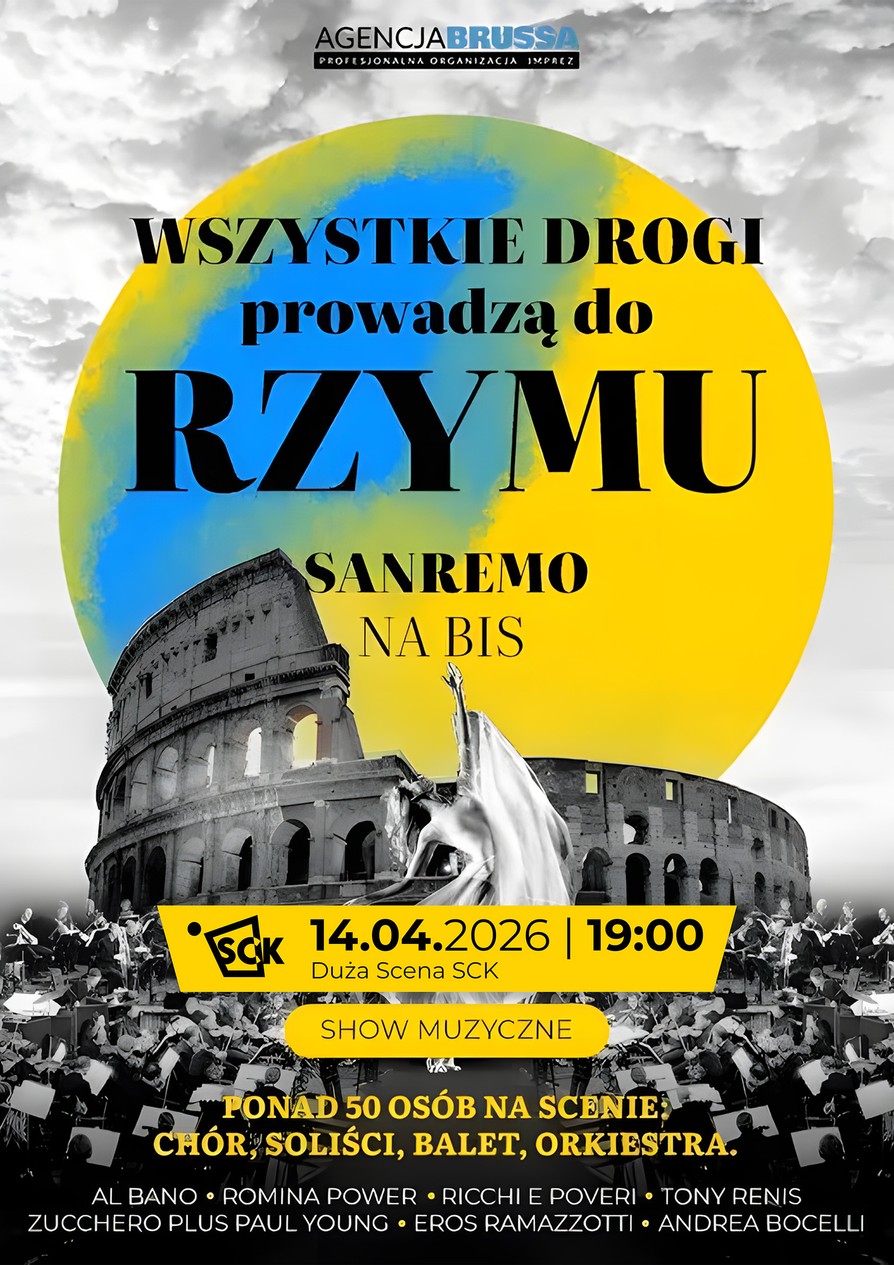 „Alle Wege führen nach Rom – Sanremo na Bis” ist ein episches Musikspektakel, das das Publikum in das Herz der italienischen Musikszene der 70er bis 90er Jahre entführt, voller Leidenschaft, Energie und unvergesslicher Emotionen. Es ist mehr als ein Konzert – es ist eine außergewöhnliche Reise in die Zeit der größten Hits des Sanremo-Festivals, die die Welt der Musik für immer verändert haben.