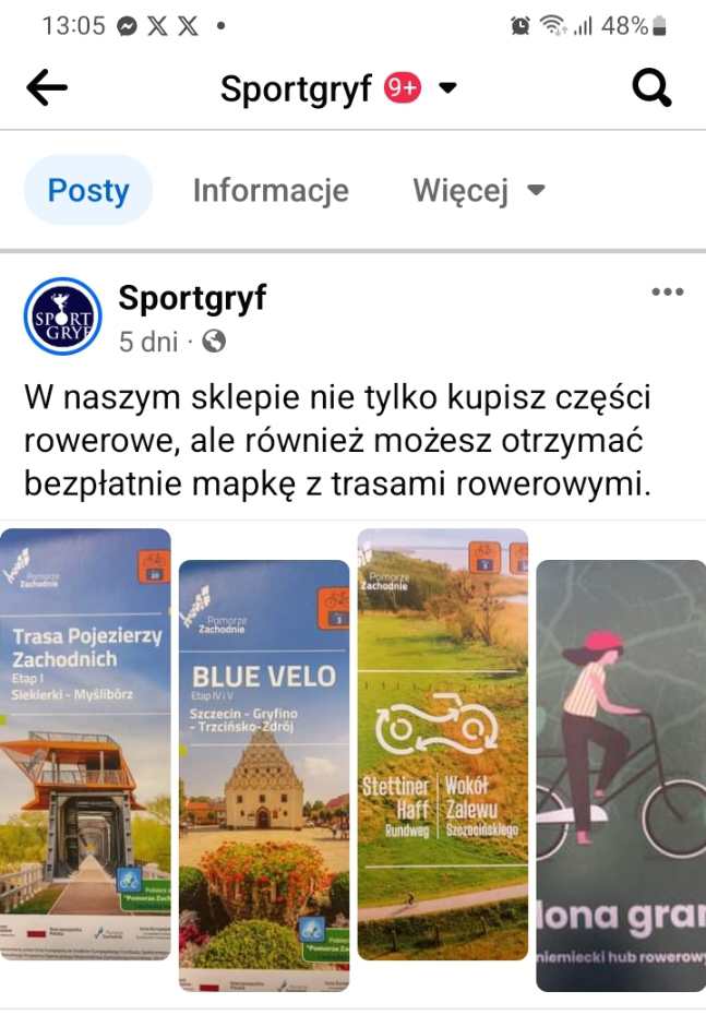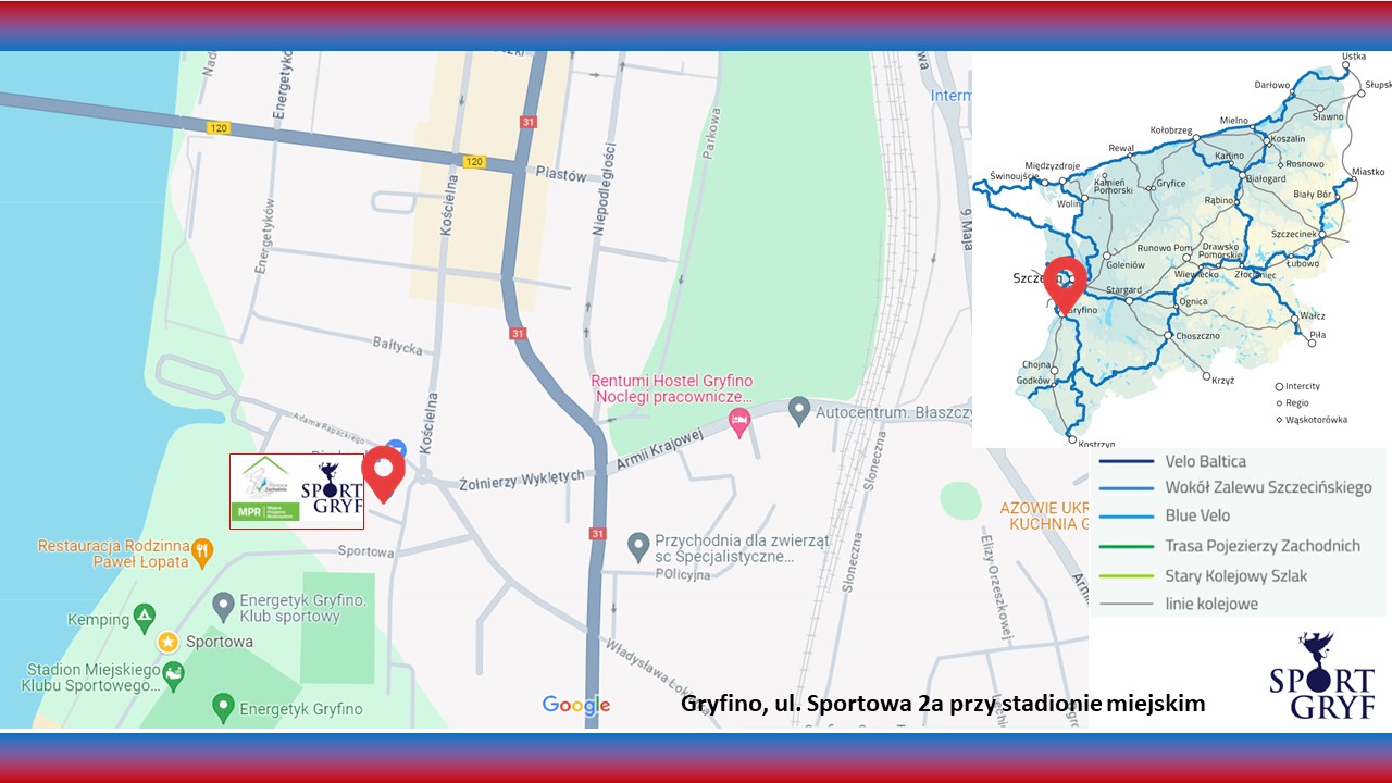 Our store is located near the Odra Blue Velo north-south bicycle route - stage IV - V (Szczecin - Gryfino - Trzcińsko-Zdrój), connecting from the north with the route Around the Szczecin Lagoon (Blue Velo stage I - II - III), and from the south with the Western Lakes Route - stage I Siekierki - Myślibrzyska - Myślibrzyska.route around Szczecin Lagoon (Blue Velo stage I - II - III) from the north, and from the south with the Western Lakes Route - stage I Siekierki - Mysliborz.