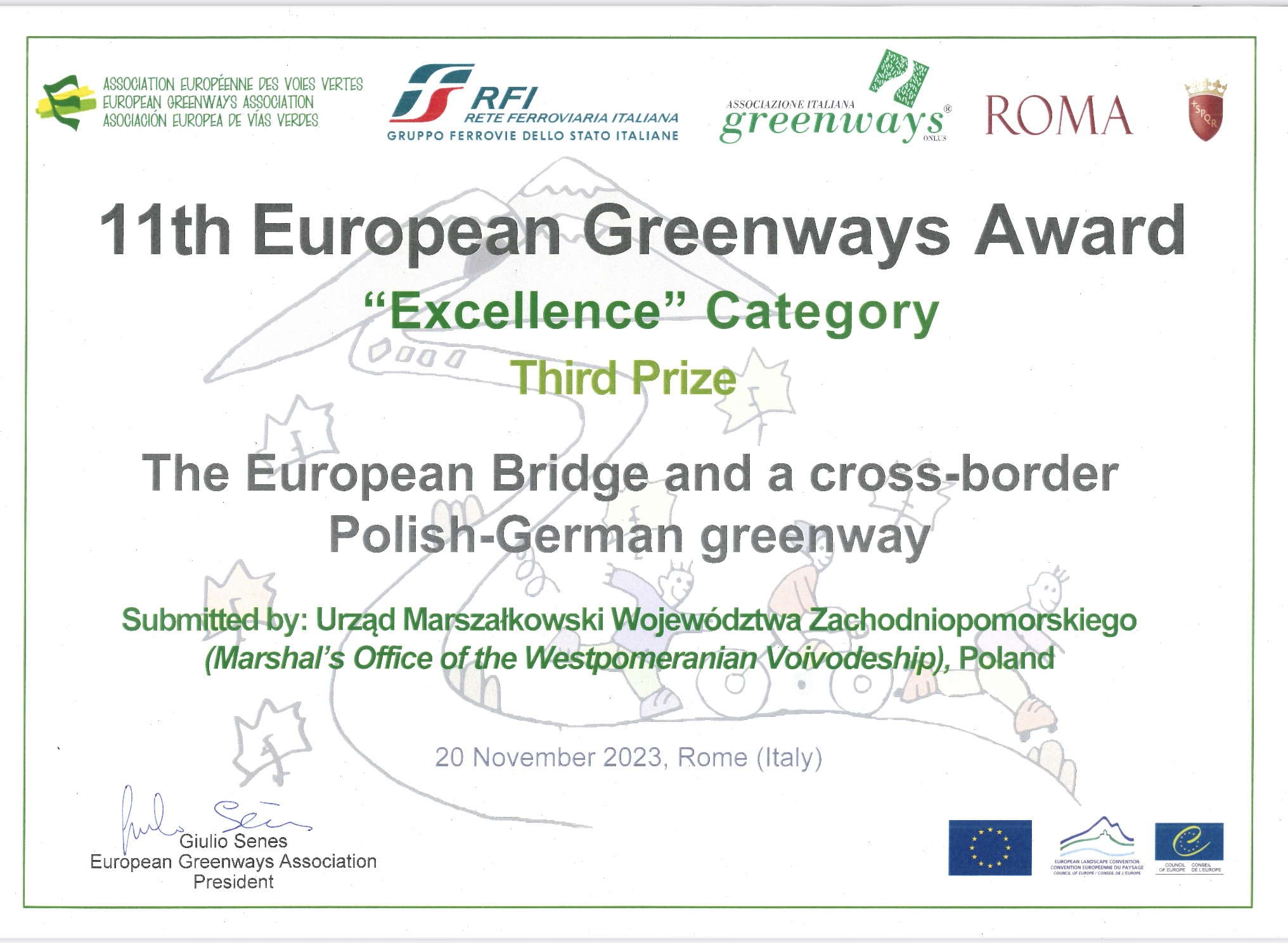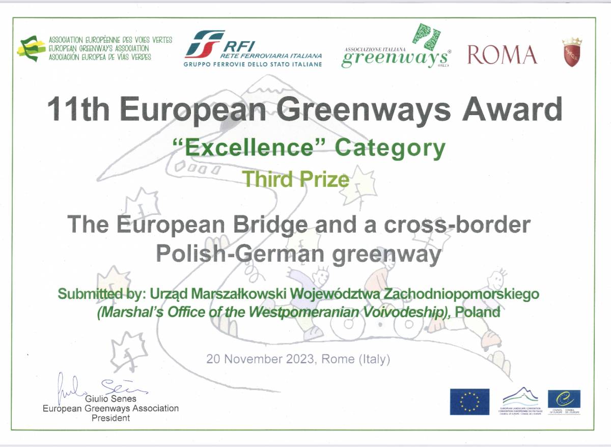 The European Bridge and a cross-border Polish-German greenway (Wriezen-Siekierki-Choszczno) won 3rd Prize.