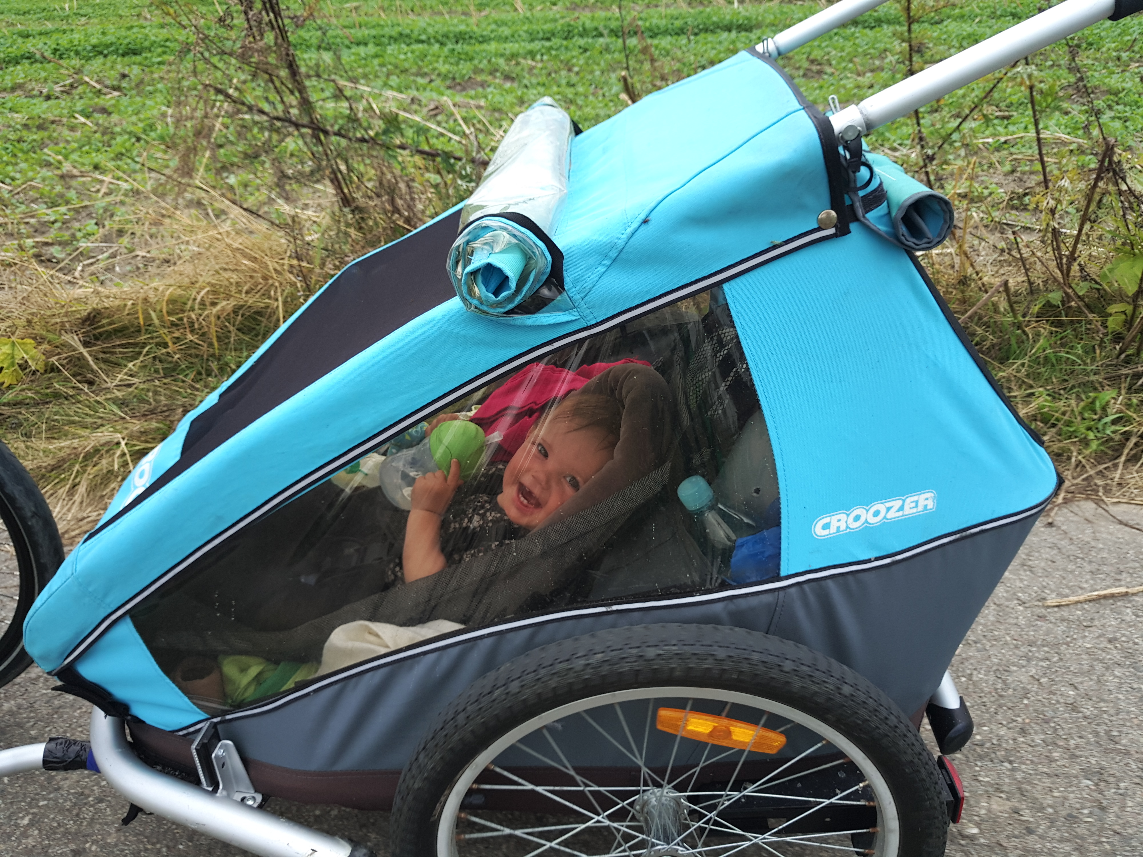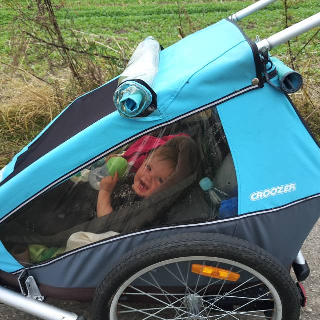 In the event of rain, there was also no fear of the baby getting wet. We tested this on the Green Velo route when it rained all day and we had to get to our accommodation and then to the train. During our 4-hour bike ride, everything got wet: the tent, the sleeping bags, ourselves - just not the children in the trailers.